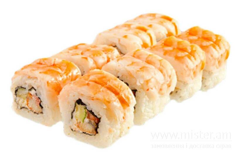 Рис, норі, креветка, креветка смажена в клярі, сир Cremette, болгарський перець.