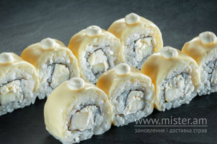 Рис, норі, креветка, крем-сир, огірок, сир Чеддер.