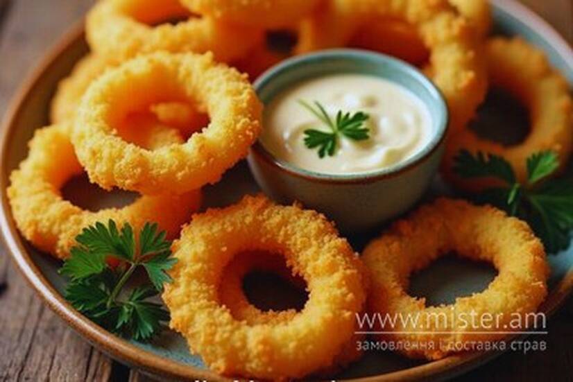 Хрусткі кільця цибулі в золотистій паніровці, обсмажені до досконалості. Смачна закуска або доповнення до основної страви.