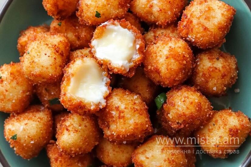 Ніжні та ароматні кульки з розтопленого сиру, обсмажені до золотистої скоринки. Смачна закуска для перекусу або апетитного доповнення до страв.