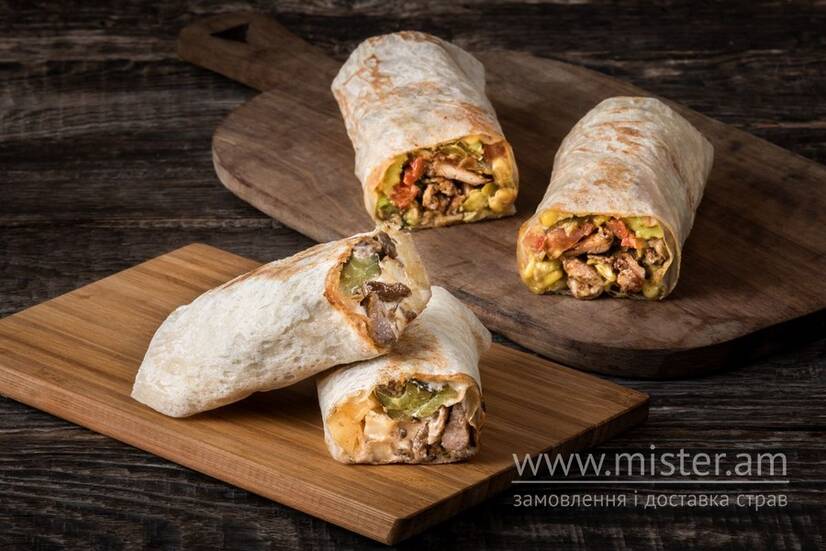 Ніжне куряче м`ясо з овочами та соусом, загорнуте в тонкий лаваш. Зручний міні-формат для легкого та смачного перекусу.