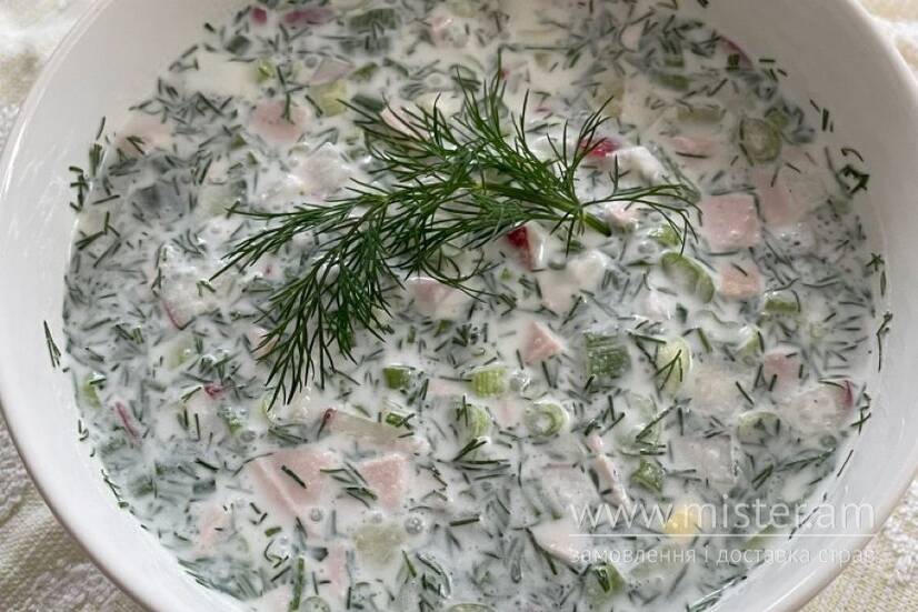 Ніжна й освіжаюча окрошка на основі сметанного соусу. Соковите куряче м`ясо, свіжі овочі, яйце та зелень створюють гармонійний смак. Ідеальна страва для літньої спеки!
