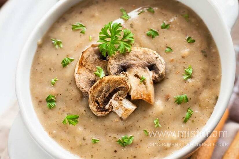 Ніжний сирний суп з ароматними печерицями, що тануть у роті. Кремова текстура та насичений смак роблять страву ситною та дуже апетитною.