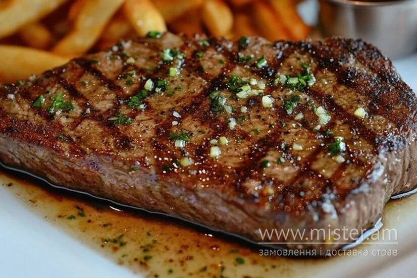 Соковитий шматок відбірної свинини, засмажений до апетитної скоринки. Подається з хрусткою картоплею фрі та соусом на вибір. Ідеальна страва для ситного та смачного обіду чи вечері.