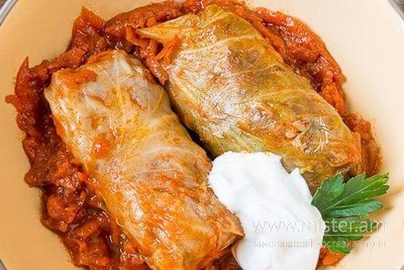 Ніжні капустяні листи, нафаршировані соковитим м`ясом та рисом, тушковані в ароматному соусі. Ситна та традиційна українська страва.