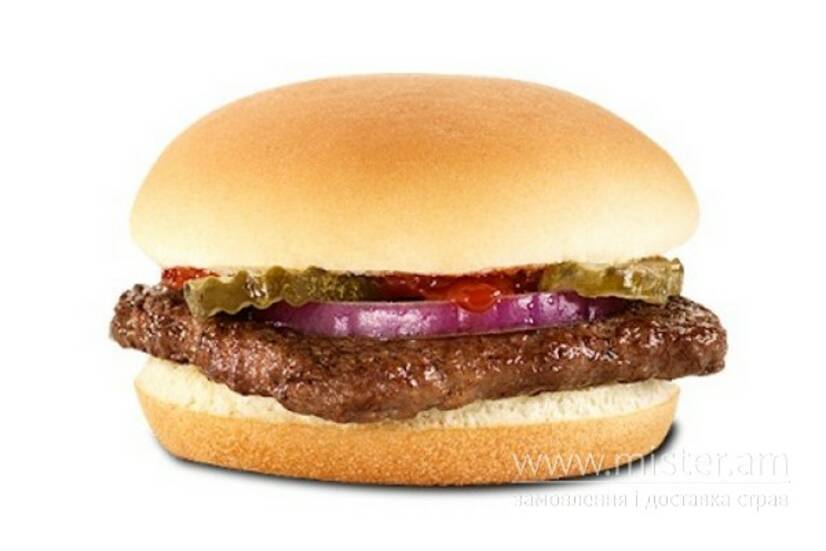 Пшенична булочка з кунжутом, соковита котлета з яловичини, маринований огірочок, цибуля, соус Тисяча островів.