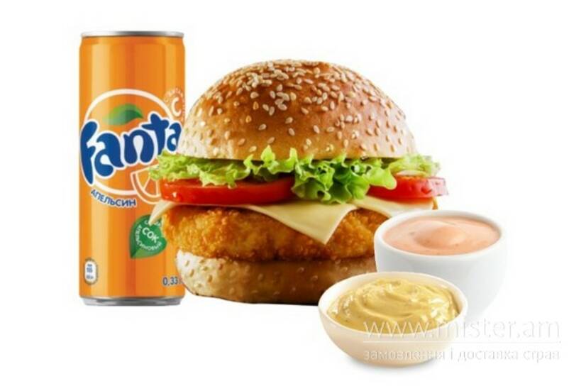 Чікенбургер, нагетси великі, 2 соус тар-тар + сирний, Фанта банка 0,33 л.
