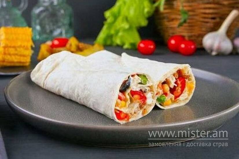 Капуста, гриби, ананас, помідор, сир, кукурудза, соус.