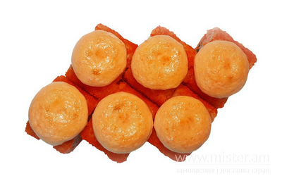 Рис, крабовий салат, лосось, вугор, вершковий сир, ікра масаго, соус спайсі.