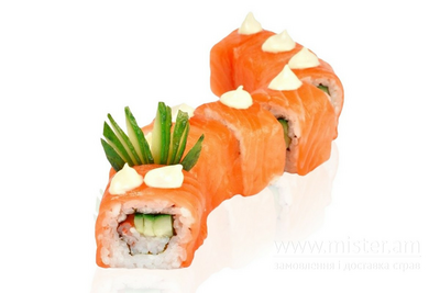 Лосось, рис, вершковий сир, вугор, ікра летючої риби, огірок.