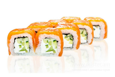 Лосось, рис, вершковий сир, огірок, авокадо.