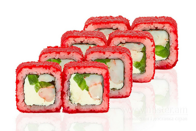 Сурімі сніговий краб, рис, японський майонез, масаго, огірок.
