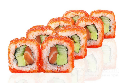Лосось, рис, огірок, ікра летючої риби, японський майонез.