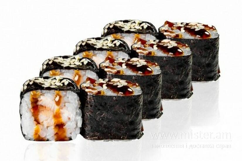 Оригінальні роли: Рол "Сакура" з креветкою., Рол "Оранж блек макі", Рол "Фуджіяма", Рол "Тобікірі", Рол "Хокусан макі", Рол "Ямато макі", Рол "Акіта макі", Рол "Канада", Рол "Сінгу", Рол "Ебі чеддер", Рол "Вакаме", Рол "Еббі Філадельфія", Рол "Унагі Філадельфія", Рол "Асахі", Токіо макі, Окаяма макі, Спайсіпіро макі, Сяке авокадо макі, Унагі каппа макі, Кунсей макі, Ханабі макі, Авокадо макі, Макі з креветкою, Спайсі макі, Уайт макі, Макі з огірком, Макі з лососем, Рол "Осака", Рол "Фуджі", Рол "Хокайдо", Рол "Атарі", Техас макі, Рол "Блек", Рол "Сайтама", Рол "Зебра", Рол "Мексика", Рол "Міссурі", Рол "Пікантний", Торі макі, Рол "Саванна", Рол "Фьюжн", Рол "Кіото", Рол "Мідорі", Рол "Еббі тай", Рол "Каліфорнія чіз", Рол "Сенсей", Рол "Кіомі", Рол "Сендай", Рол "Фінляндія", Рол "Номіоко", Рол "Еббі де люкс", Рол "Саппоро", Рол "Лава еббі", Рол "Ямато", Рол "Лава унагі", Рол "Лава сяке", Рол "Філадельфія роял", Рол "Такеші", Рол "Америка", Рол "Адзума", Рол "Окінава", Рол "Унагі де люкс", Рол "Ніжний лосось", Рол "Сегун", Рол "Балі", Рол "Сутекі", Рол "Унагі яблуко", Рол "Філадельфія яблуко", Рол "Цезар", Рол "Банзай", Рол "Вега", Рол "Ебі чіз", Макі суші з м`ясом, Рол "Дор-блю голд", Рол "Лагуна", Рол "Цезар" з креветкою, Рол "Фієста", Рол "Гаваї", Рол "Майямі", Рол "Кейзай чікен", Рол "Торі чеддер", Рол "Манго грін", Рол "Оранж Чеддер", Рол "Наомі", Рол "Бомбей", Рол "Комплімент", Рол "Курка Тай", Рол "Флейм", Рол "Ніндзя", Рол "Марбл манго", Сирний рол з м`ясом, Рол "Балі спайсі", Рол "Унагі манго", Рол "Унагі банан", Рол "Груша дорблю"