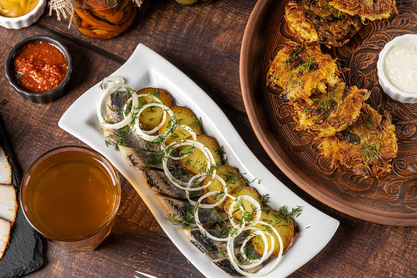 Криниця на Соборності Оселедець зі смаженою картоплею та цибулею