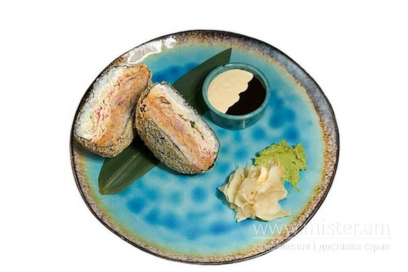 Свинина Тясю з гострим соусом BBQ, сніжний краб в сирному соусі, пармезан, соус Цезар.