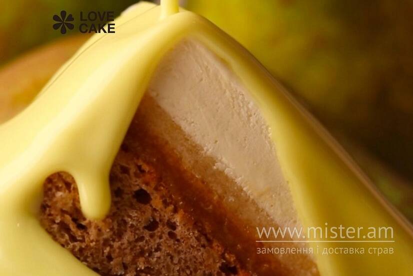 Горіховий бісквіт, солона карамель, грушове конфі, ванільний мус.