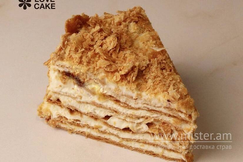 Хрусткі коржі з рурбленого тіста, вершково-заварний крем.