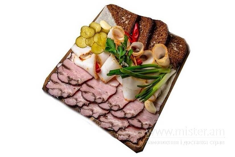 Бекон, сало, огірки, грінки, чилі, цибуля зелена.