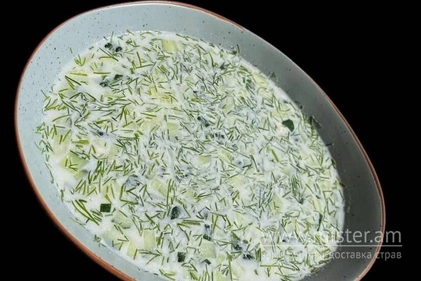 Картопля, яйце, куряче філе, огірок, заправка, зелень.