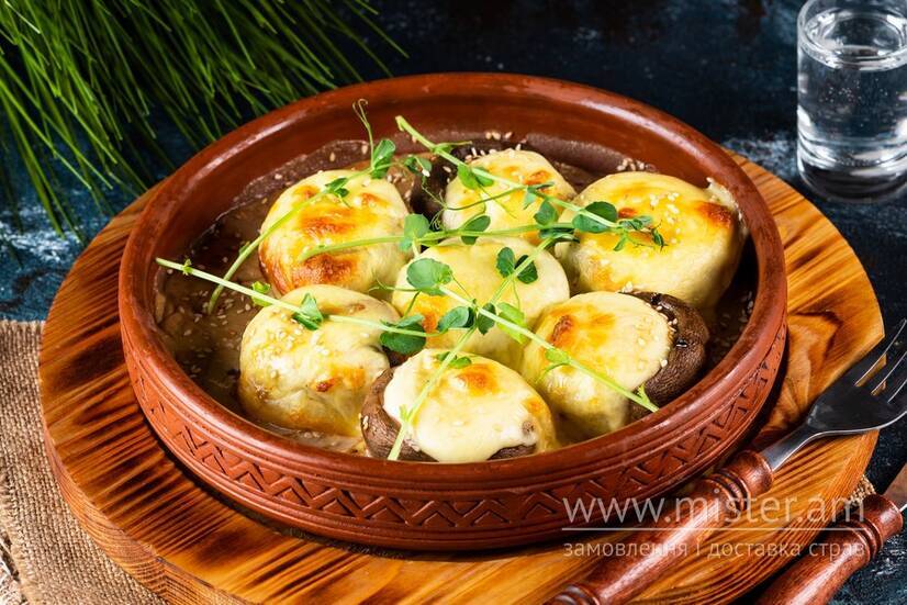 Міміно Печериці, запечені на кеце із сиром сулугуні