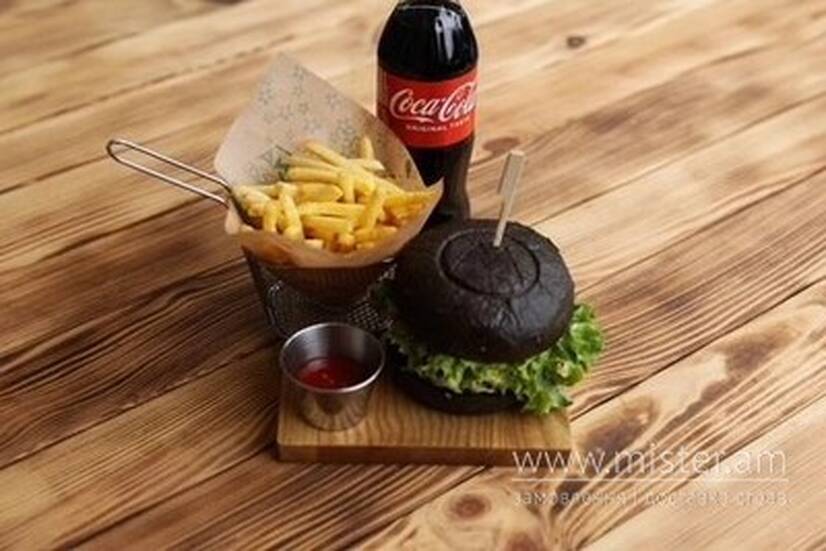 Бургер "Барбекю", фрі стандарт, кетчуп, напій на вибір.
