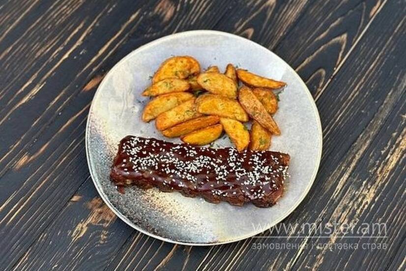 Ребра свинини, соус BBQ, картопля по-креольськи.