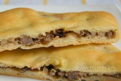 Тісто, м`ясо яловиче, цибуля, часник, спеції грузинські.