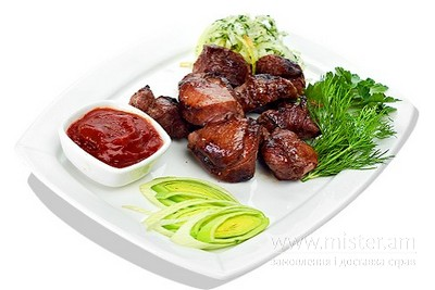 Вагова страва, мінімальна порція 200 г. Свинина ошийок, цибуля, перець, сіль.