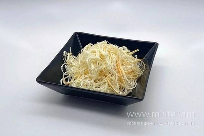 Вид твердого солоного сиру, тонкими смужками.