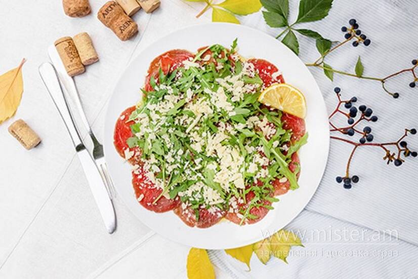 Закуски: Пікантний арахіс, Таріль закусок до пива, Вуха свинні в "азіатському" соусі, Брускети з помідорами та фетою, Брускети з прошутто, авокадо та в`яленими помідорами, Брускети з тунцем, Брускети з лососем, Сирна таріль, Рибна таріль, Таріль італійських м`ясних делікатесів, Тартар з тунця та авокадо, Тартар з телятини , Карпачо з лосося