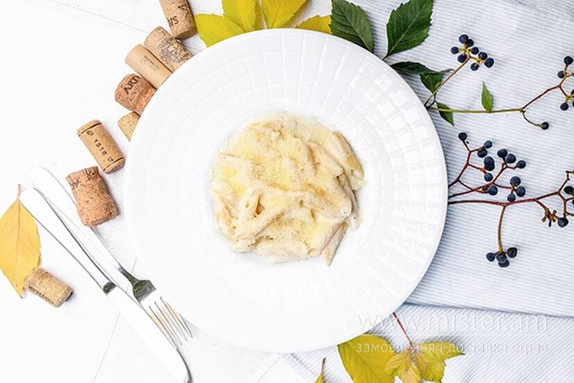 Тальятеле з тигровими та коктейльними креветками у вершково-сирному соусі