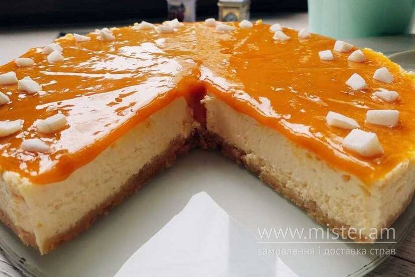 Чизкейк на основі крем-сиру Філадельфія з апельсиновою цедрою, натуральним пюре манго та ніжною основою з мигдалевого борошна. Тропічна насолода, що зігріває навіть узимку.