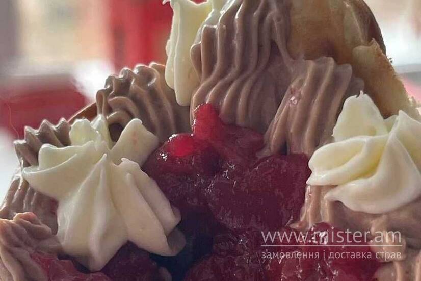 Гонконгська вафля з вишнею та шоколадом – ніжний шоколадний крем-чиз із бельгійським шоколадом та насичене компоте з вишні додають витонченого смаку.