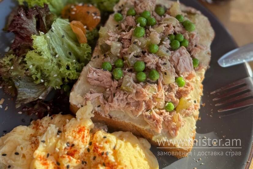 Туна на скибці гречаного, яйця на вибір
