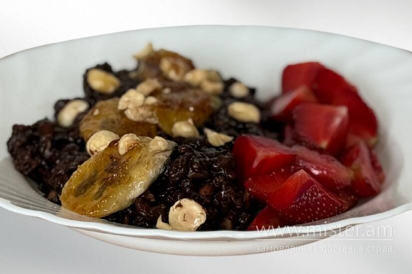 Ніжна вівсяна каша з какао, збагачена фундуком, свіжими ягодами та бананом. Легкий і поживний сніданок, що заряджає енергією зранку. Б/Ж/В 11,7/11,6/89.