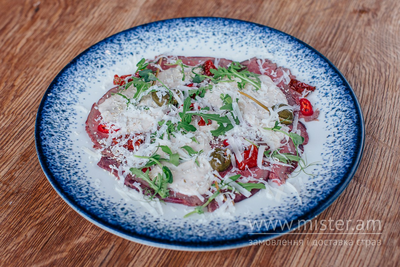 Філе яловичини сувід, соус з тунцем та каперсами.