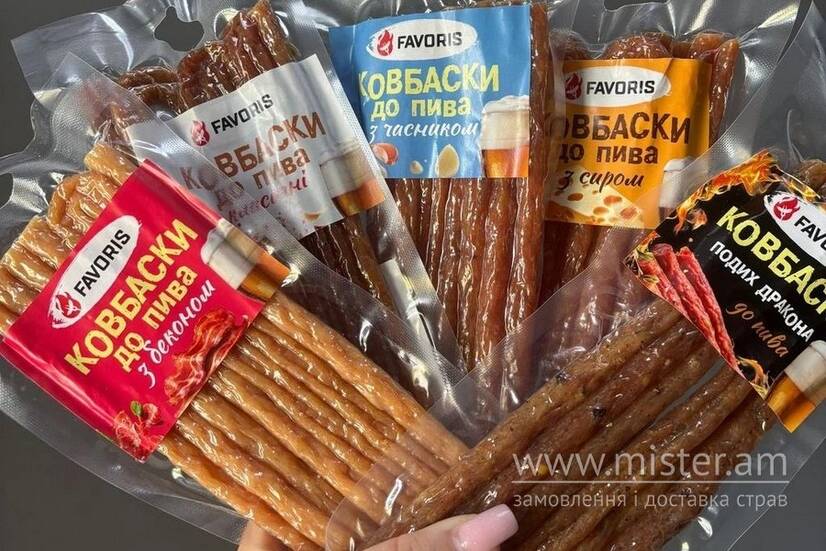 Снеки: Тунець, Кальмар стружка, Анчоус, Смугастик, Мацик, Мацикові ковбаски , Вирізка свинна, Коктейльні ковбаски, Джерки курячі, Спинка тріски з перцем , Сир косичка, Вуха свинні, Арахіс, Фісташка США, Lays, Кукурудза мед-гірчиця, Грінки хвилясті, Домашні гріночки, Грінки до бочкового, Ребра свинні, Pringles