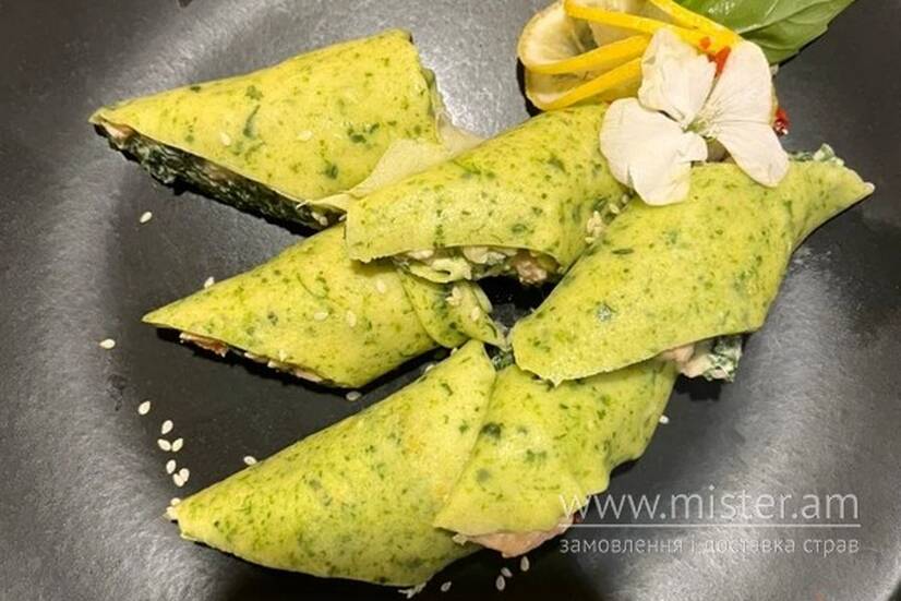 Млинці зі шпинатом та лососем