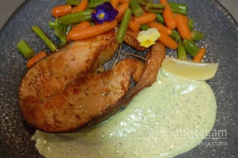 Гуцул Bolzani Стейк з лосося зі спаржевою квасолею та бебі морквою