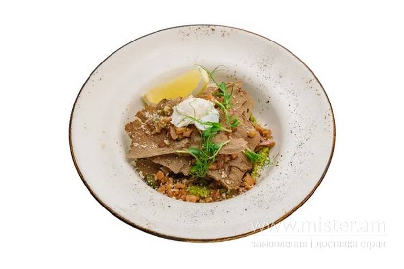 М`ясо в бокалі Тартар з лосося та лемішкою