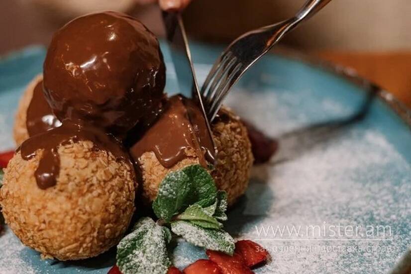 М`ясо в бокалі Сирники з шоколадом (на компанію)
