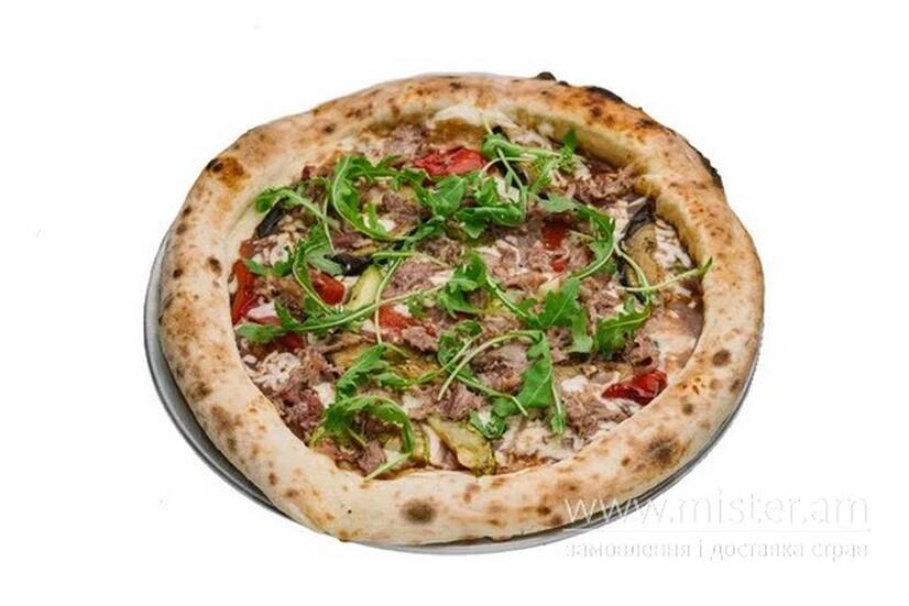 Соус барбекю,моцарела тверда,грильовані овочі,рвана свинина, мікс салату.