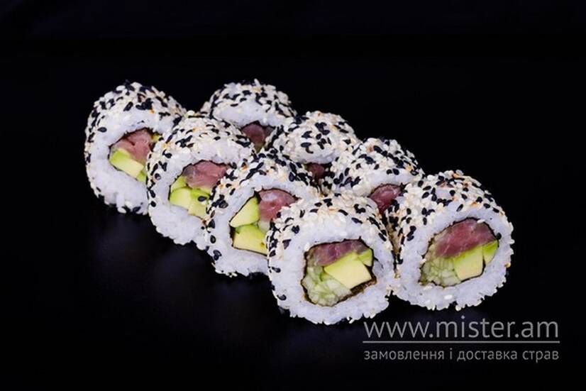 Огірки, норі, рис, кунжут, авокадо, тунець, соєвий соус.
