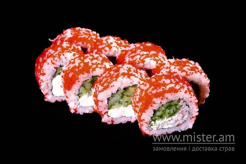 Норі, сир Філадельфія, сніжний краб, ікра масаго, рис, огірки.