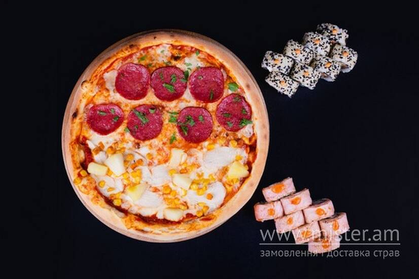 Піца "Дитяча", піца "Салямі", Рол Кіндай, Філадельфія з лососем гриль.