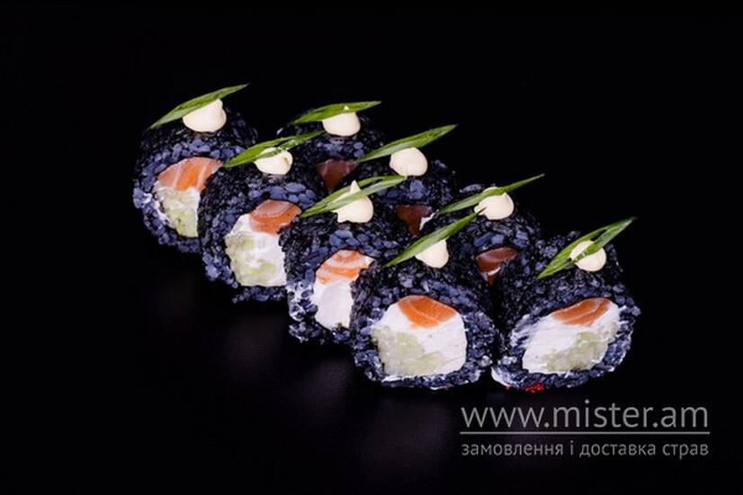 Чорний рол з лососем