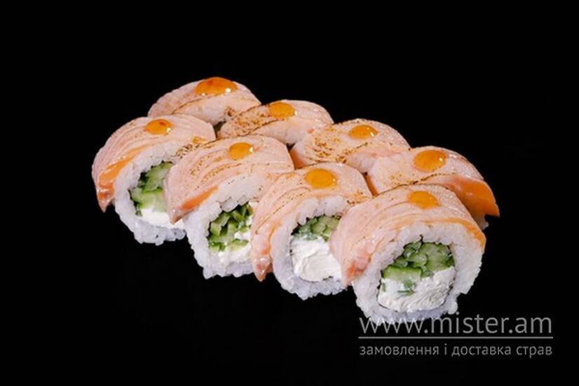 Огірки, норі, соус світ чілі, філе лосося, рис, сир Філадельфія.