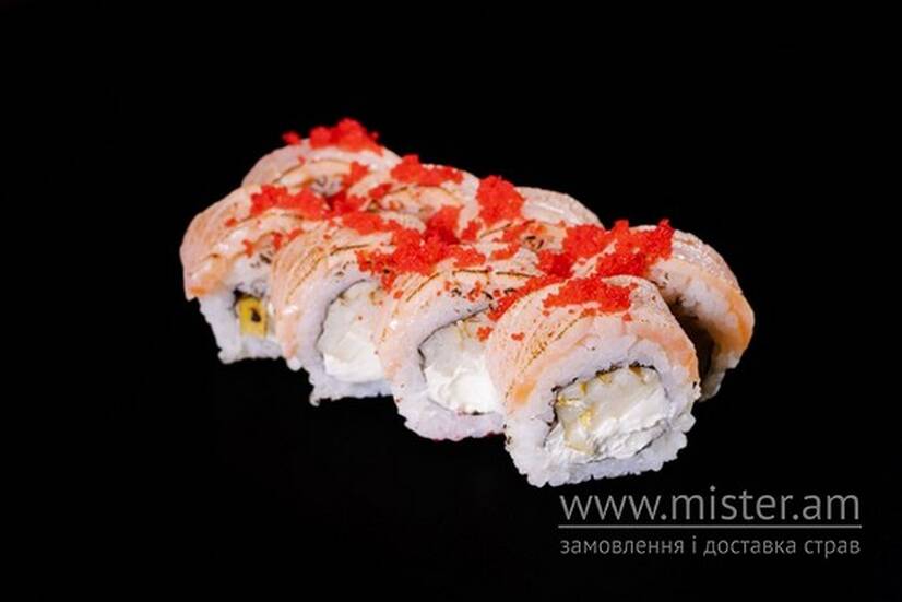 Норі, філе лосося, рис, сир Філадельфія, груша, ікра масаго.