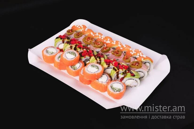 Авокадо рол, Манго-Авокадо рол, Вогняний дракон, Філадельфія класік з лососем та огірком.